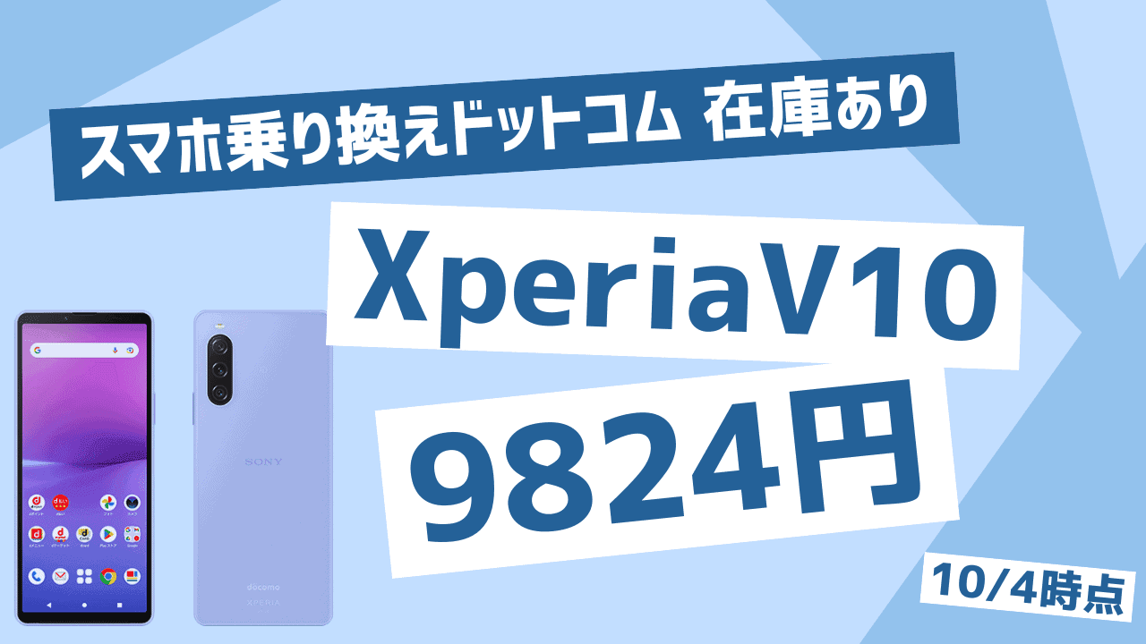 【10月4日】スマホ乗り換えドットコムでXperia10Vが一括9,824円。今なら在庫あり。最大限お得に購入する方法。