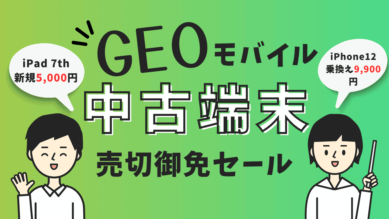 GEOモバイル売切御免セール解説。中古とはいえiPhone 12が9,900円は安い。
