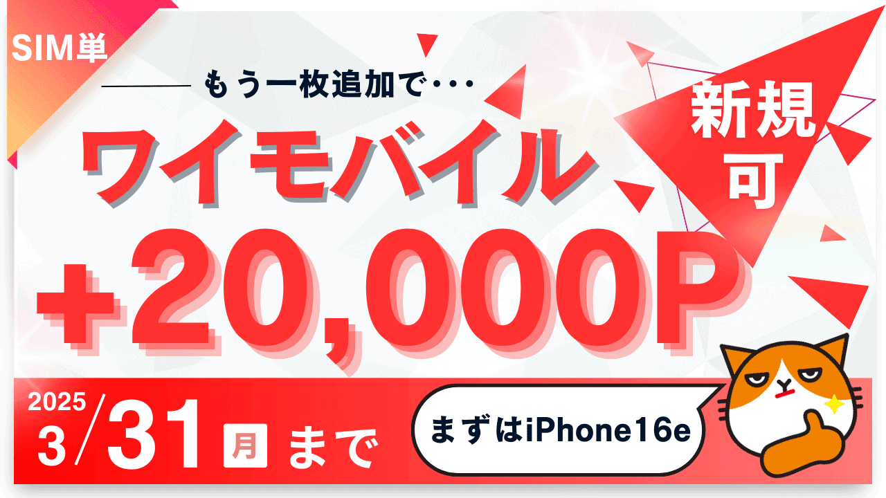 初手SIM単体CBの時代は終わりました。まずiPhone16eをMNPで66,024円で買ってから、更に新規契約でワイモバイルを追加して最強へ。