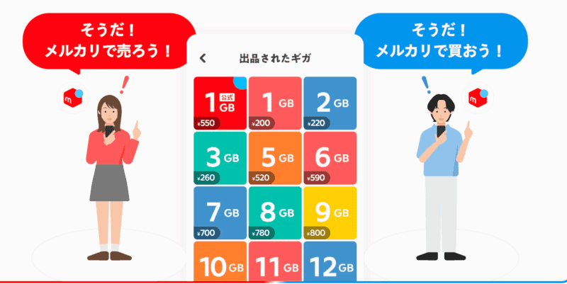 【追記 2025/09/04】以下、旧メルカリモバイルの情報になります。ギガの売買に関しては現在も同様です。
