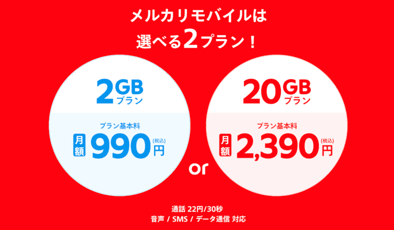 メルカリモバイルの料金プランは非常にシンプルで、2つのプランから選択するだけです。