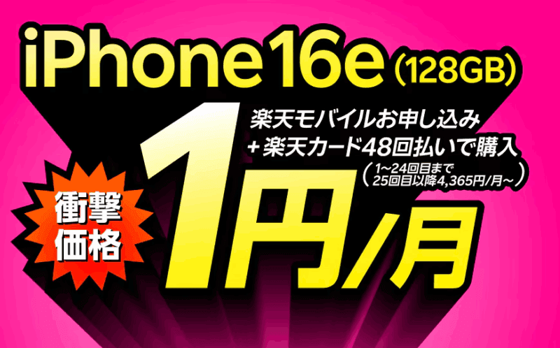 たまお楽天モバイルが新規契約者全員にiPhone16eを月額1円で配るって本当?