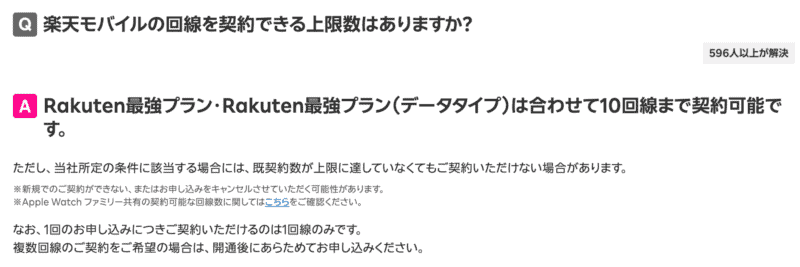 楽天モバイル自体の1名義あたりの申し込み上限は?