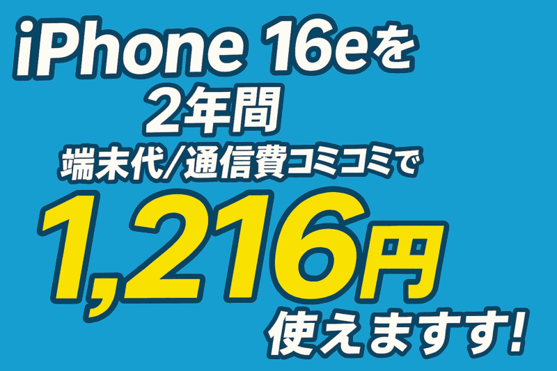 - 通信費込み月額1,216円でiPhone16eが2年間利用可能