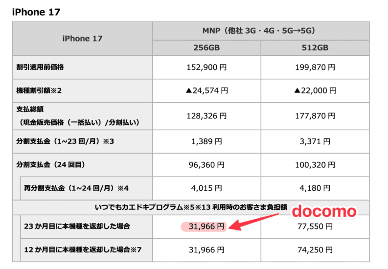 docomoいつでもカエドキプログラム🥈 31,966円約1,331円