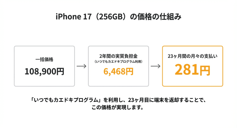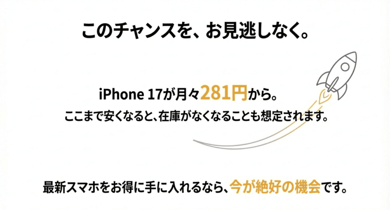 iPhone 17が月281円は安すぎ。これは在庫なくなる。
