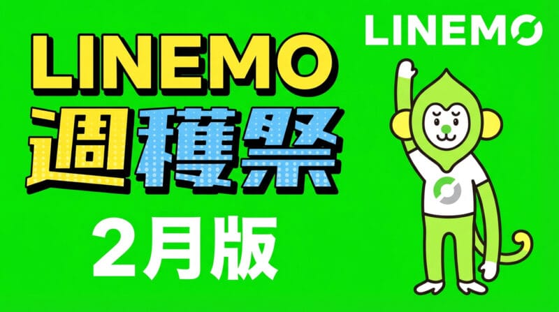 LINEMOが2026年2月も「週穫祭」として週替わりで異なる特典キャンペーンを実施中です。2月は「ベストプランV基本料3カ月0円」や「PayPay増額+データ増量」といったキャンペーンが展開されています。