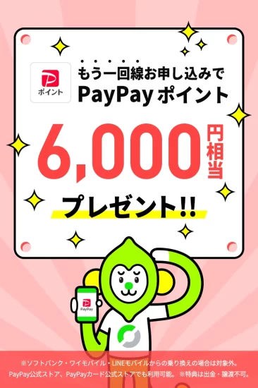 【既存ユーザー可】2回線まとめて申込みで+6,000PayPayポイント