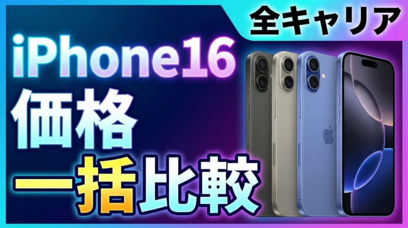 この記事では、iPhone 16(128GB)の価格を、ドコモ・au・ソフトバンク・楽天モバイル・UQモバイル・ワイモバイルの主要6社で比較します。定価 / MNP一括 / MNP+2年返却(端末返却)の3パターンに分けて、どこが安いかを整理しました。