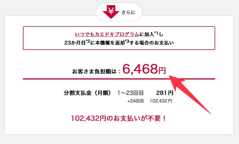 返却しない場合は、残りの分割払い(24回分前後の残債)を継続して支払うことで端末を買い取ることも出来ます。ただし意図せず返却を忘れると毎月数千円の残債が発生し続けるため、購入した月から25ヶ月目をカレンダーに登録しておくのが無難です。