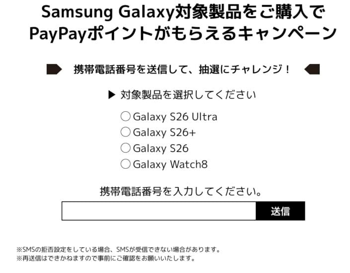 - Galaxy S26: 5,000円相当のPayPayポイント