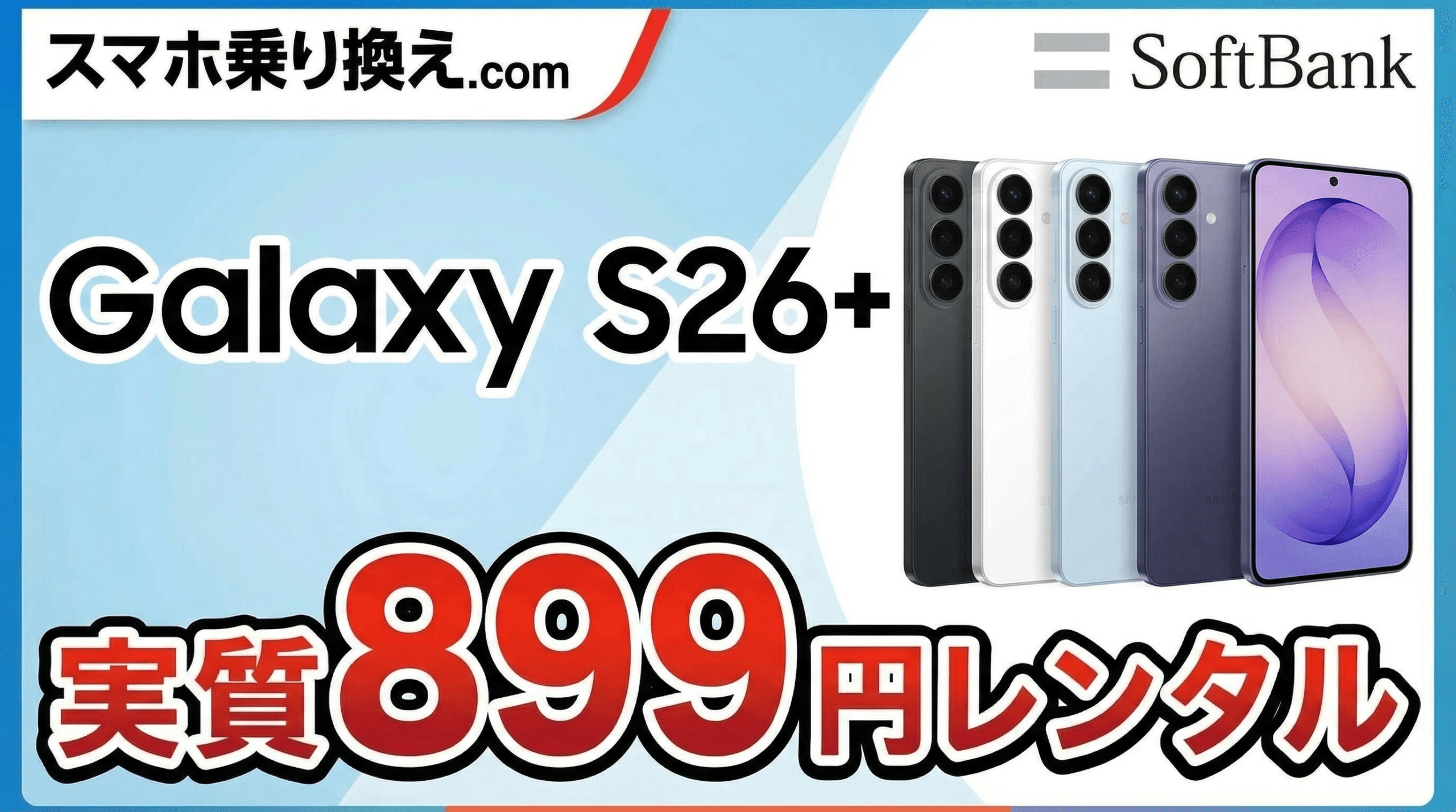 Galaxy S26+を2年レンタルするなら、スマホ乗り換えドットコム経由がベスト。持ち出し21,580円、月899円。公式で普通に買ったら188,640円の端末が月899円で使える。しかもCBは現金振込。