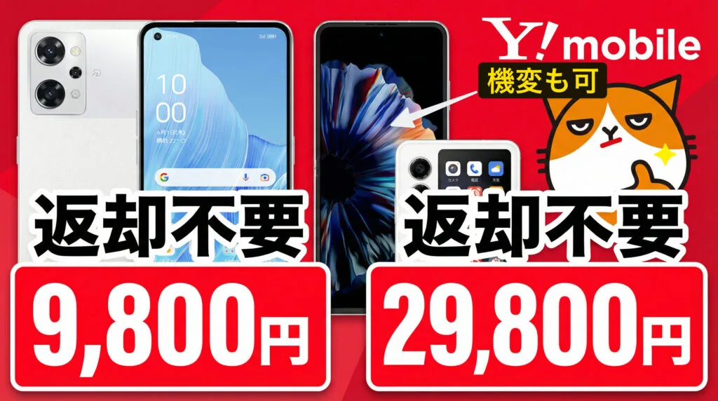 ワイモバイルでnubia Flip 2とOPPO Reno9 A 2つの投げ売りセール開始。nubiaは機変も同じ価格。