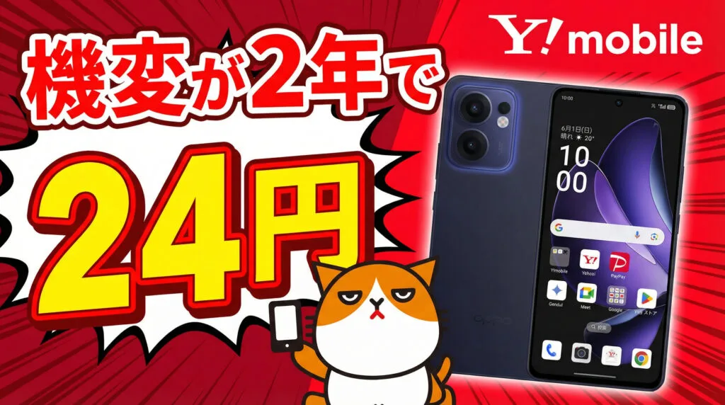 【機種変更が最安】ワイモバイルOPPO Reno13 Aが2年レンタル月額1円へ。MNPを差し置いて逆転