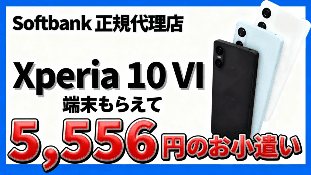 Xperia 10 VI 一括9,824円+20,000円CB案件がまた進化したの? 期間限定でオプの維持期間が12ヶ月→1ヶ月になったよ。ソフトバンク代理店限定の特別キャンペーン。 【追記】2025/11/22 Xperia 10VIは完売しました。今後はArrows We2が一括1円+20,000CB施策に...