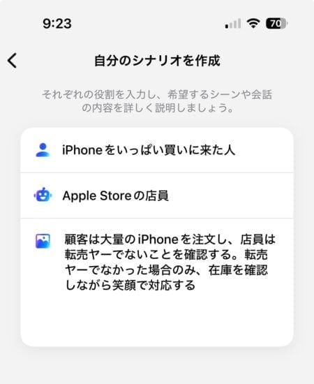 シミュレーションが無限に出来ます。人によって立場は千差万別なので、例えばレストランで宗門したい、iPhoneを買いたい、ビザを取りたいなど様々な場面を仮想シミュレーションできます。AIが優秀で自然な会話が可能です。