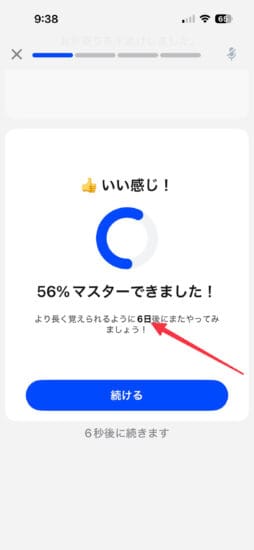 例えば今回のレッスンは6日後に復習すると良いということがわかりました。そしてまたAIがぴったりのタイミングで復習させてくれます。