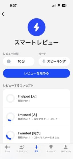復習機能もとても優秀です。学習曲線をAIが自動判断してぴったりのタイミングで復習が出来ます。